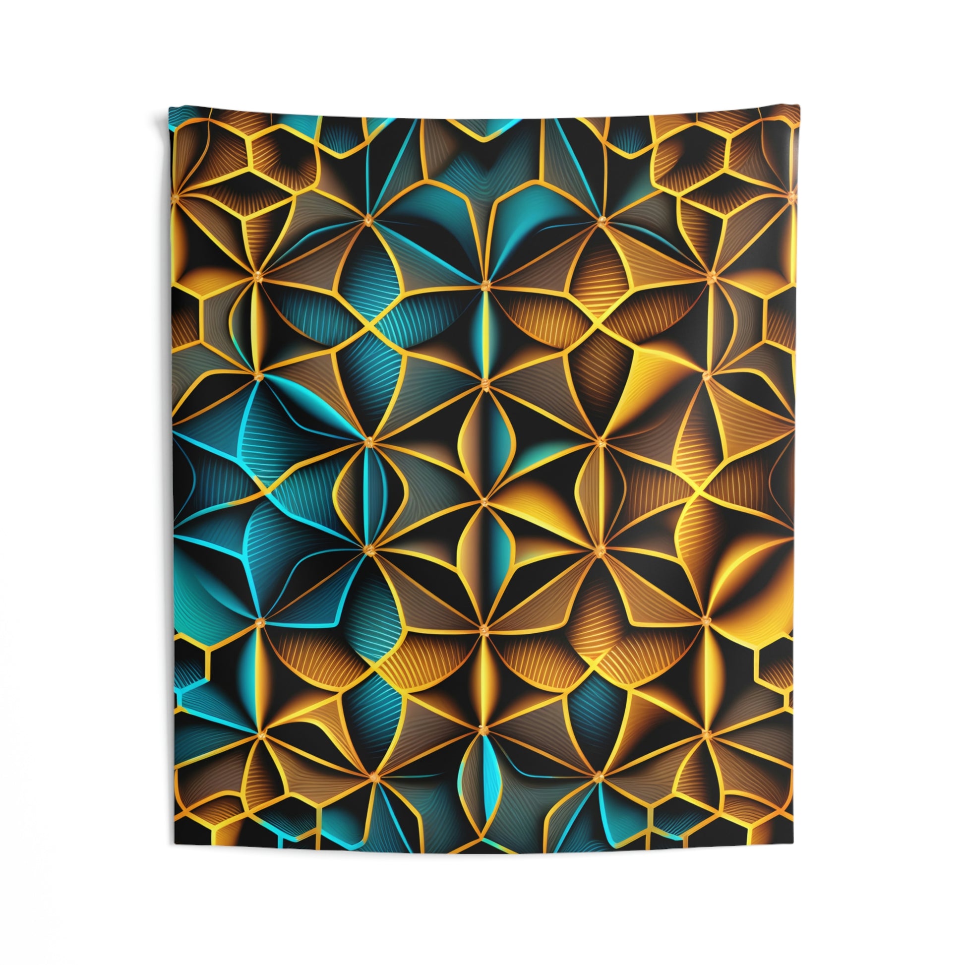 Ocean Gold Sacred Geometry Indoor Wall Tapestry