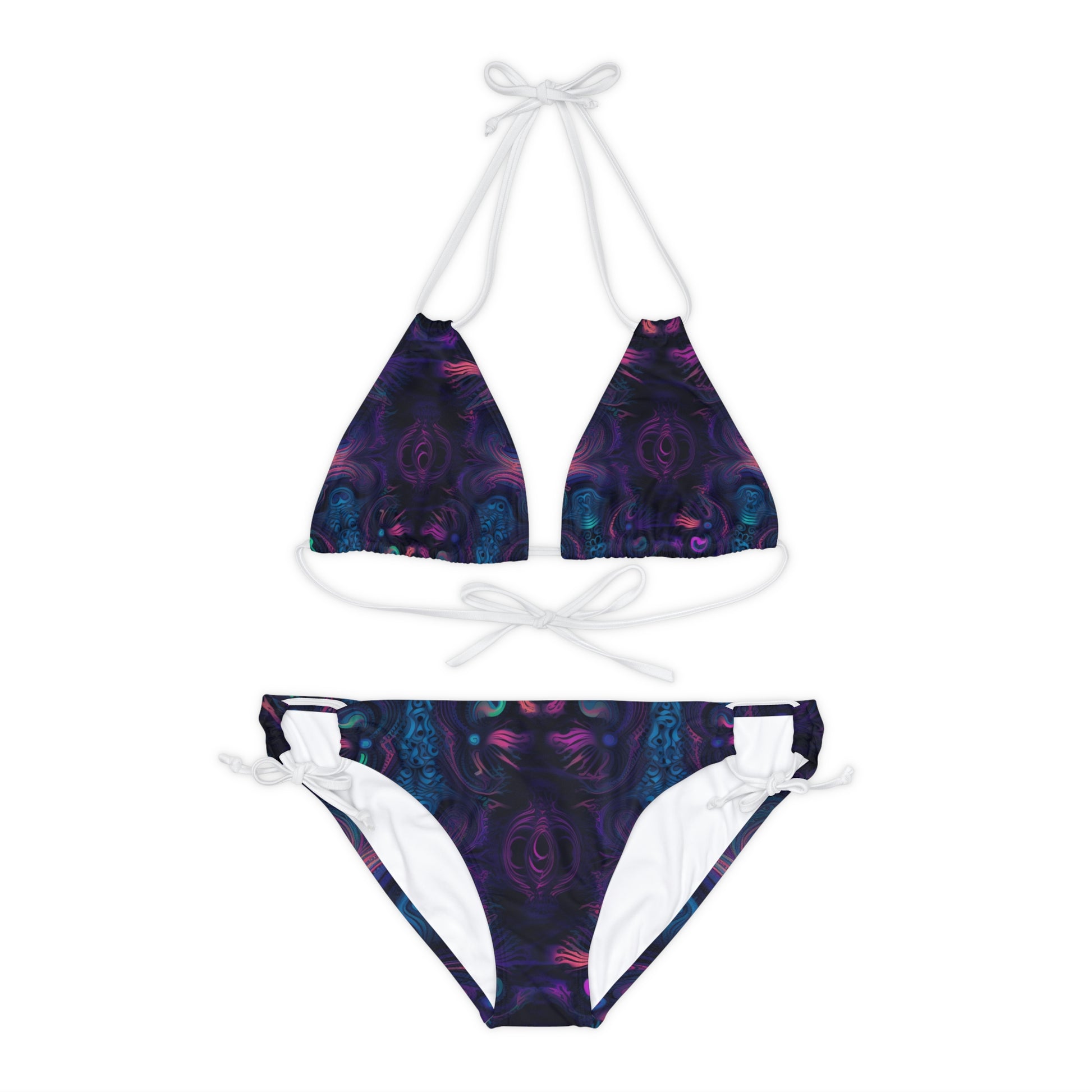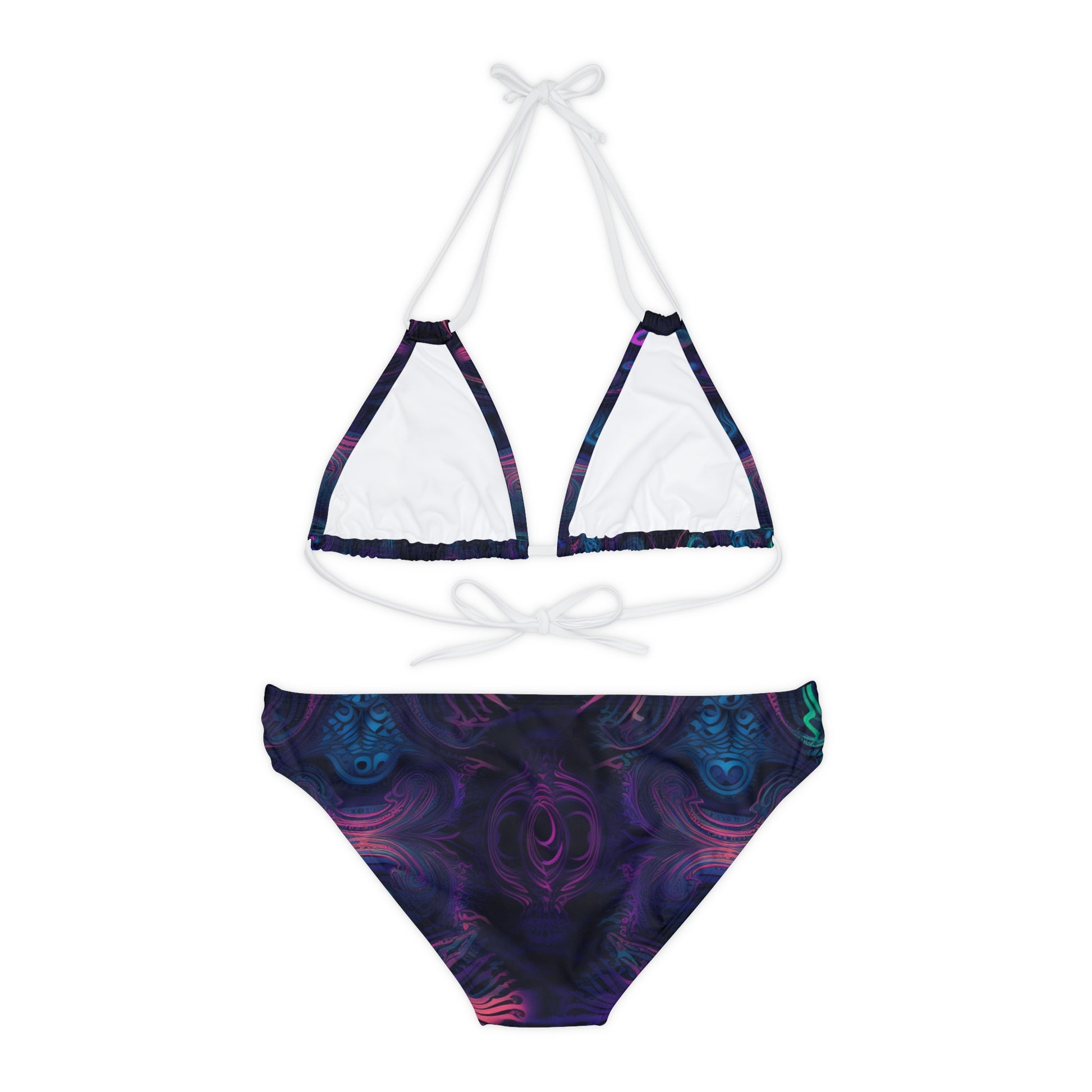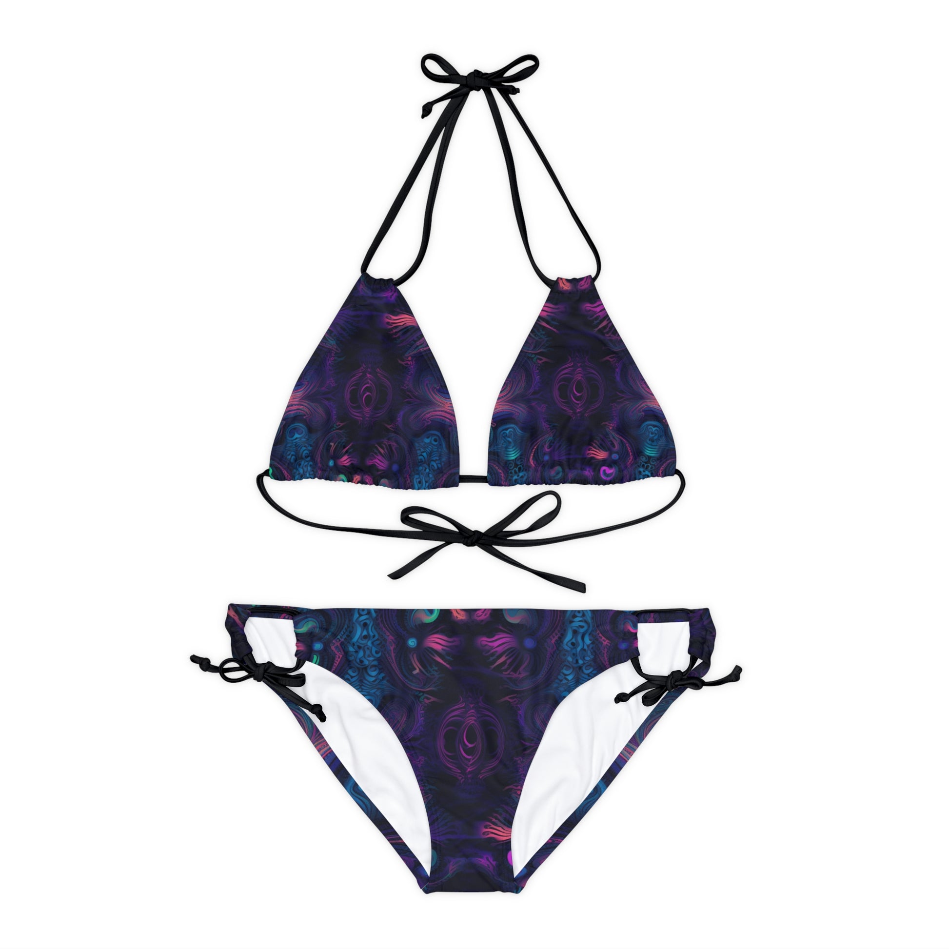 Made with 4-way stretch Tricot (82% Microfiber, 18% Spandex), this strappy bikini set is the perfect companion to all summer escapades.